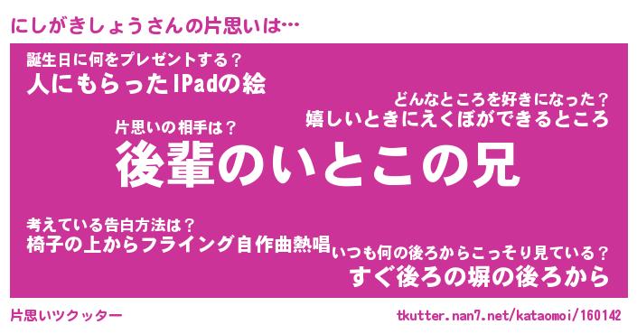 | ヘコむあだ名 | 『にしもー』『酢こんぶ』 |