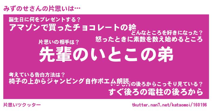 | ヘコむあだ名 | 『みずにゅー』『酢こんぶ』『みずを』 |