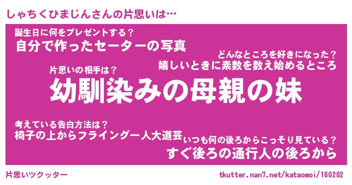 | 胡散臭い通販商品みたいなあだ名 | 『必ず成功するブレスレット…その名も「しゃちくひまじん」』 |