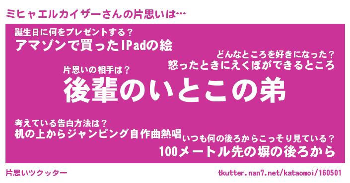 | ヘコむあだ名 | 『ミヒにゅー』『なまこ酢』『ミヒを』 |