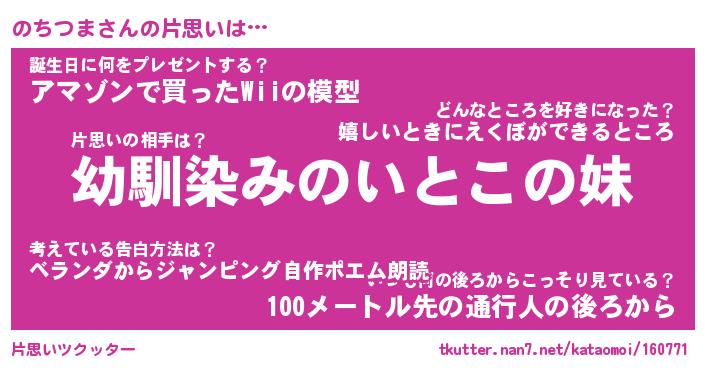 | 男性向けラノベタイトル風あだ名 | 『のちつまの憂鬱』 |
