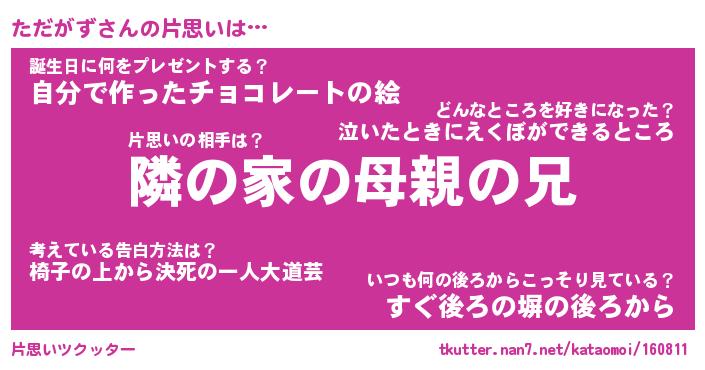 | ヘコむあだ名 | 『ただにー』『豆乳』『ただお』 |