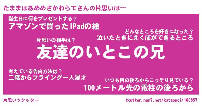 | ヘコむあだ名 | 『たまもー』『なまこ酢』『たまっぺ』 |