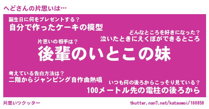 | ヘコむあだ名 | 『へどにゅー』『つくし』『へどを』 |