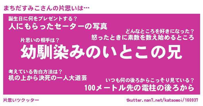 | ヘコむあだ名 | 『まちもー』『酢こんぶ』『まちお』 |