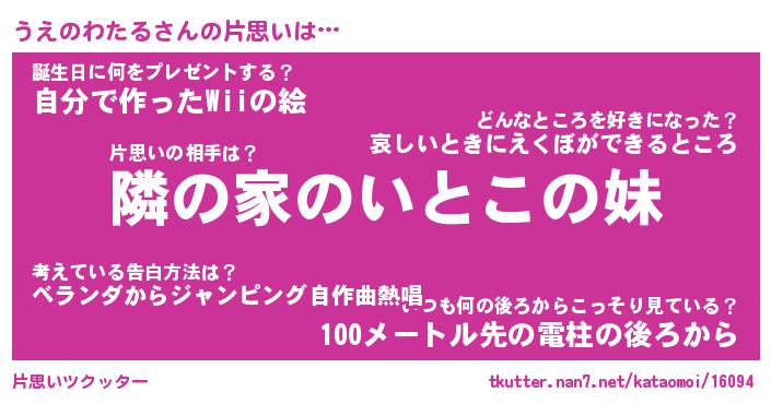 | ツイッター | うえのわたるさんのツイッターID『kikurage_idle』 |