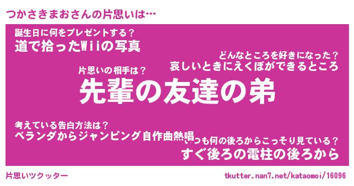 | 恥ずかしいあだ名 | 『プリティーつかさきまお』『つかっちょ』 |