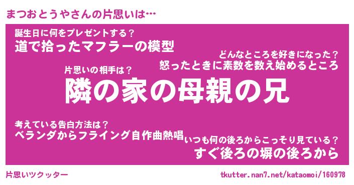 | 胡散臭い通販商品みたいなあだ名 | 『必ず成功するブレスレット…その名も「まつおとうや」』 |
