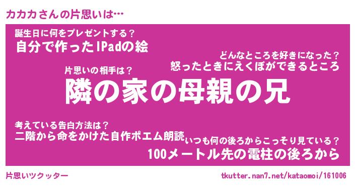 | ヘコむあだ名 | 『カカにー』『牛乳』『カカぷりん』 |