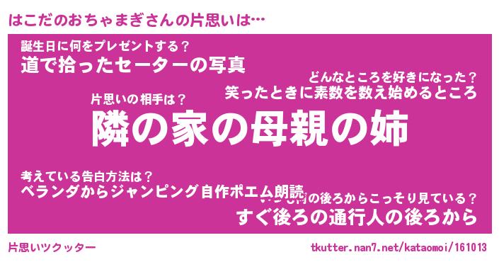| 胡散臭い通販商品みたいなあだ名 | 『必ず成功するブレスレット…その名も「はこだのおちゃまぎ」』 |