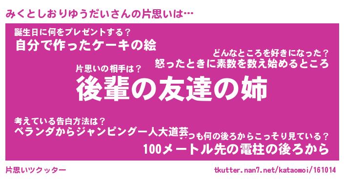 | ツイッター | みくとしおりゆうだいさんのツイッターID『dendenmushi_nyan』 |