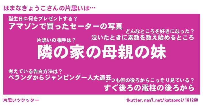 | 胡散臭い通販商品みたいなあだ名 | 『必ず成功するブレスレット…その名も「はまなきょうこ」』 |