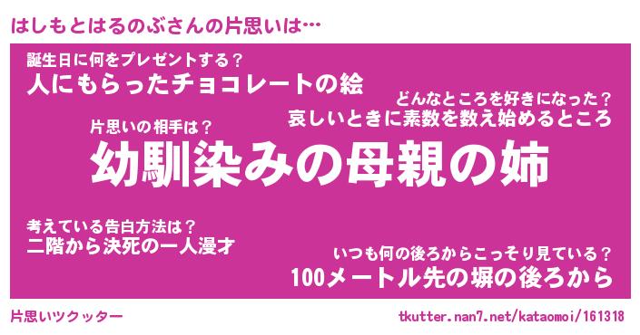 | 男性向けラノベタイトル風あだ名 | 『はしもとはるのぶの憂鬱』 |