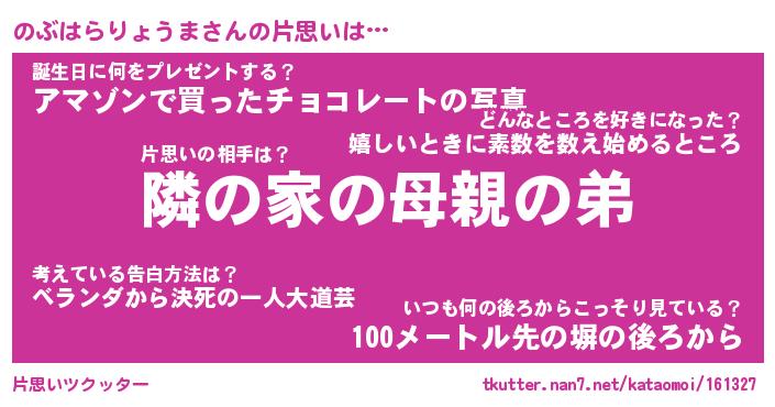 | 胡散臭い通販商品みたいなあだ名 | 『必ず成功するブレスレット…その名も「のぶはらりょうま」』 |