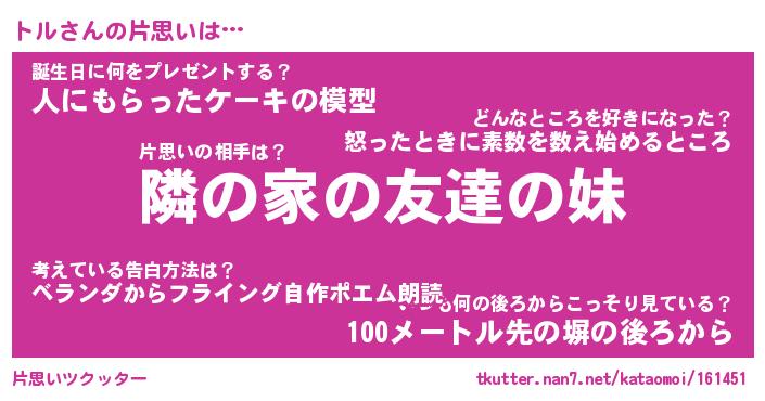 | 男性向けラノベタイトル風あだ名 | 『トルの憂鬱』 |