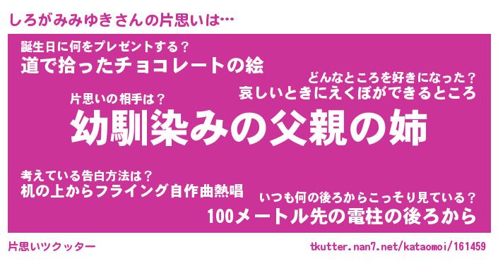 | 胡散臭い通販商品みたいなあだ名 | 『必ず成功するブレスレット…その名も「しろがみみゆき」』 |