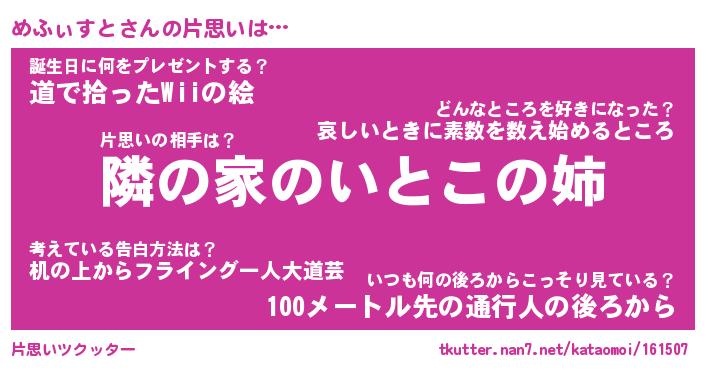 | ヘコむあだ名 | 『めふもー』『豆乳』『めふっちょ』 |