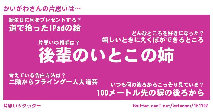 | ヘコむあだ名 | 『かいもー』『牛乳』『かいっ子』 |