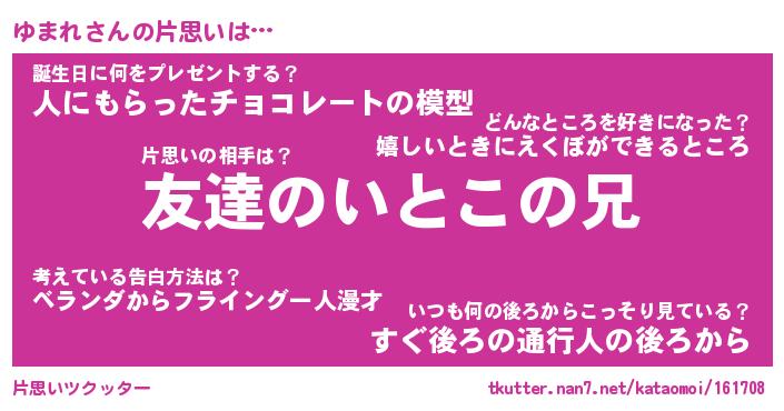 | 意味不明あだ名 | 『ペロリンゆまれ』『ゆまれフォーエバー』 |