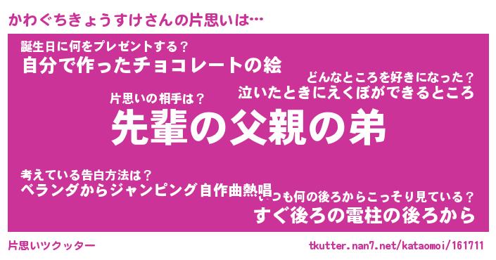 | ヒーロー風カッコイイあだ名 | 『スーパーカワグチキョウスケ』 |