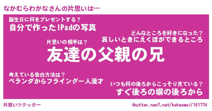 | 胡散臭い通販商品みたいなあだ名 | 『億万長者になれる水晶球…その名も「なかむらわかな」』 |