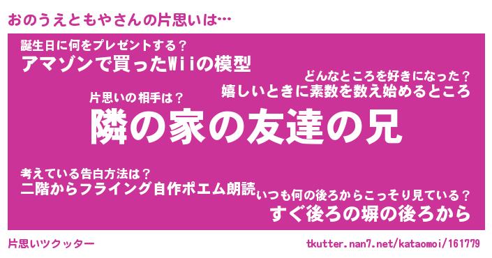 | 胡散臭い通販商品みたいなあだ名 | 『必ず成功する霊験あらたかなお札…その名も「おのうえともや」』 |