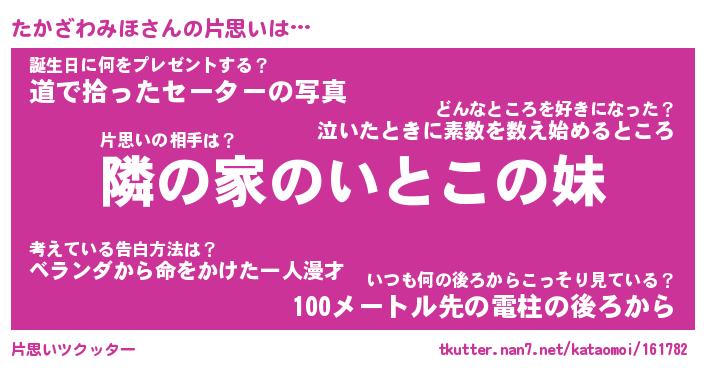 | 胡散臭い通販商品みたいなあだ名 | 『モテモテ間違いなし霊験あらたかなお札…その名も「たかざわみほ」』 |