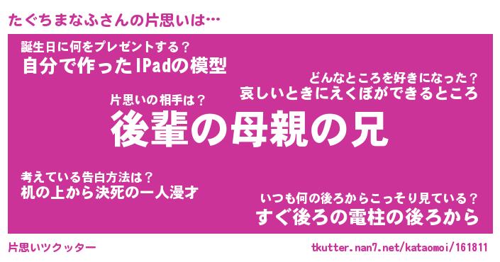 | 恥ずかしいあだ名 | 『プリティーたぐちまなふ』『たぐっちょ』 |
