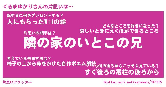 | 恥ずかしいあだ名 | 『プリティーくるまゆかり』『くるっちょ』 |