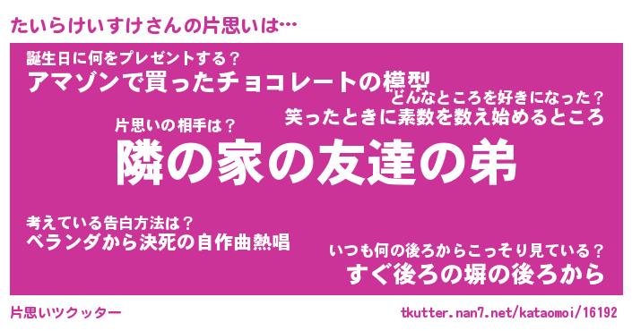 | 胡散臭い通販商品みたいなあだ名 | 『モテモテ間違いなし霊験あらたかなお札…その名も「たいらけいすけ」』 |