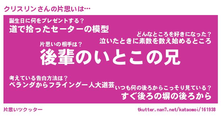| 欧米人風あだ名 | 『マイケルクリスリン』 |