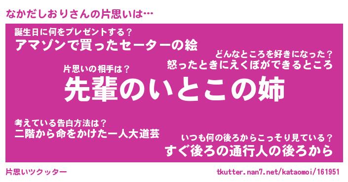 | ツイッター | なかだしおりさんのツイッターID『masyumaro_idle』 |