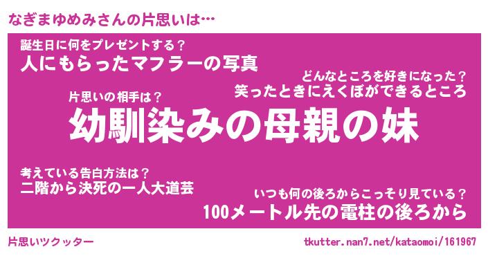 | ヘコむあだ名 | 『なぎにー』『酢こんぶ』『なぎを』 |