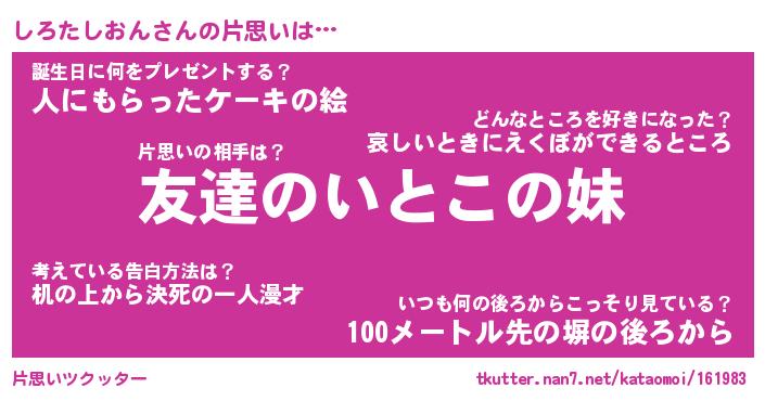 | 胡散臭い通販商品みたいなあだ名 | 『億万長者になれる霊験あらたかなお札…その名も「しろたしおん」』 |