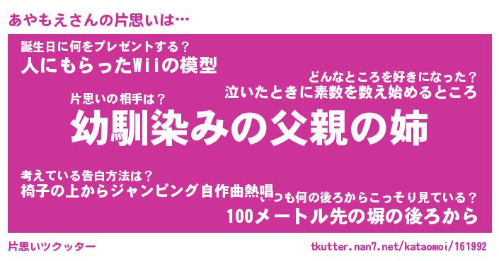 | 胡散臭い通販商品みたいなあだ名 | 『必ず成功する水晶球…その名も「あやもえ」』 |