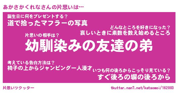 | ヒーロー風カッコイイあだ名 | 『スーパーアカサカクレナ』 |