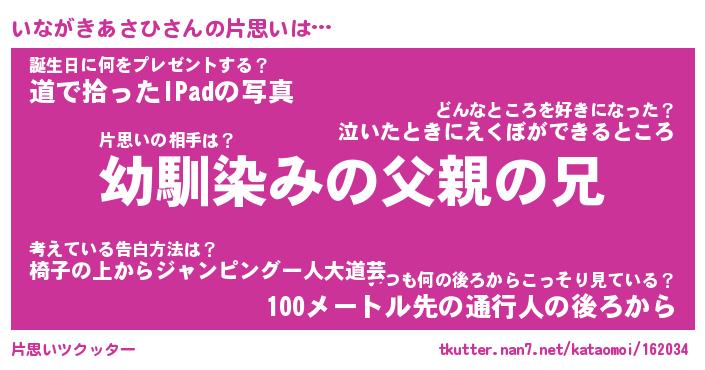 | 男性向けラノベタイトル風あだ名 | 『いながきあさひの憂鬱』 |