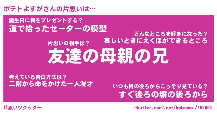 | ヘコむあだ名 | 『ポテにー』『牛乳』『ポテっぺ』 |