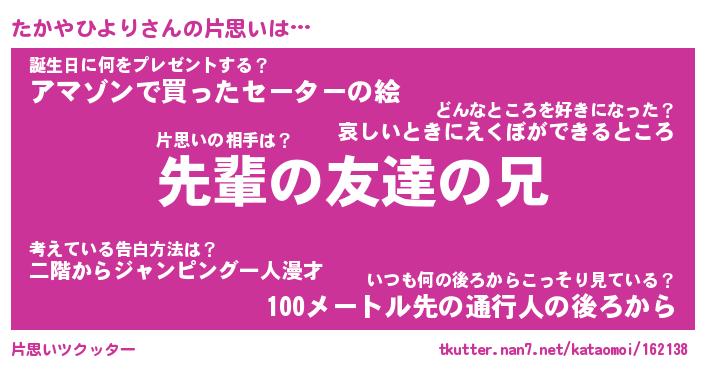 | 胡散臭い通販商品みたいなあだ名 | 『モテモテ間違いなし霊験あらたかなお札…その名も「たかやひより」』 |