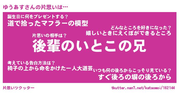 | 胡散臭い通販商品みたいなあだ名 | 『モテモテ間違いなし霊験あらたかなお札…その名も「ゆうあす」』 |