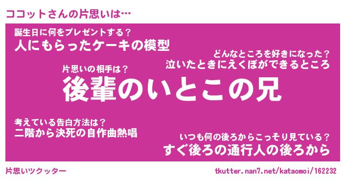 | ファンタジー風あだ名 | 『ココフェル』『エターナルココットー』 |