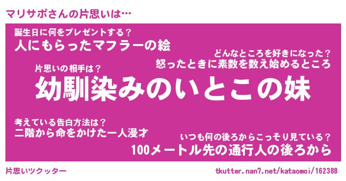 | 意味不明あだ名 | 『ペロリンマリサポ』『永久保存マリサポ』 |