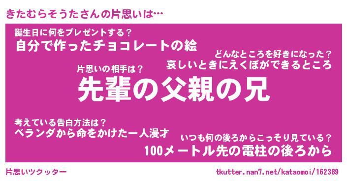 | ヒーロー風カッコイイあだ名 | 『スーパーキタムラソウタ』 |