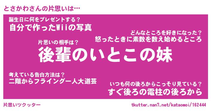 | ヘコむあだ名 | 『とさもー』『つくし』『とさを』 |
