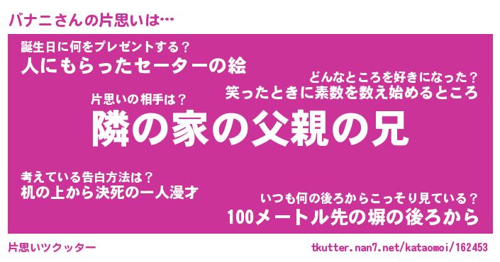 | 男性向けラノベタイトル風あだ名 | 『バナニの憂鬱』 |