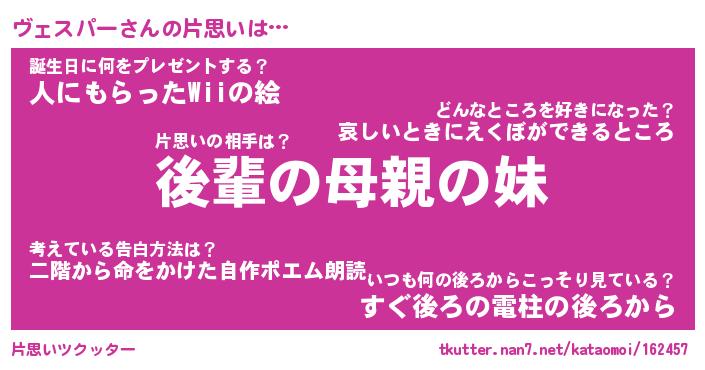| ヒーロー風カッコイイあだ名 | 『スーパーヴェスパー』『天弓騎士ヴェ』 |