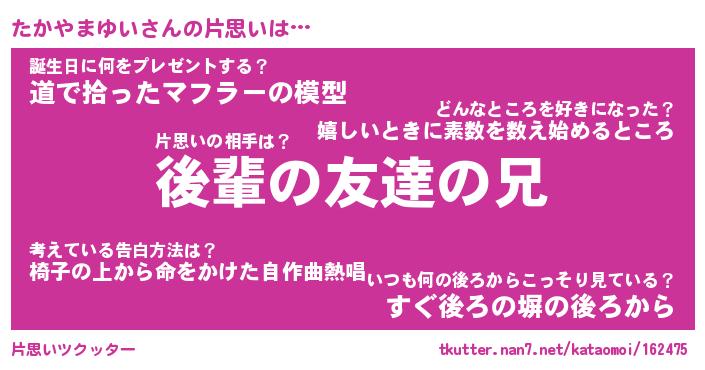 | ヒーロー風カッコイイあだ名 | 『スーパータカヤマユイ』『天弓騎士タカ』 |