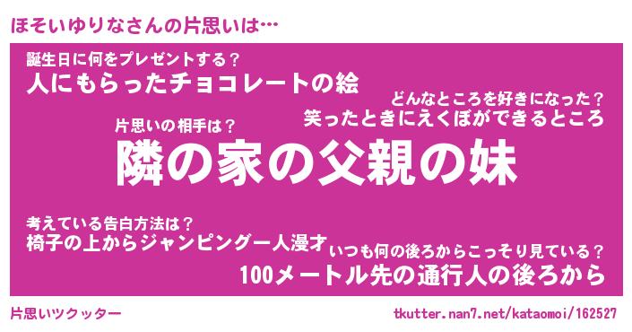 | 恥ずかしいあだ名 | 『プリティーほそいゆりな』『ほそっちょ』 |