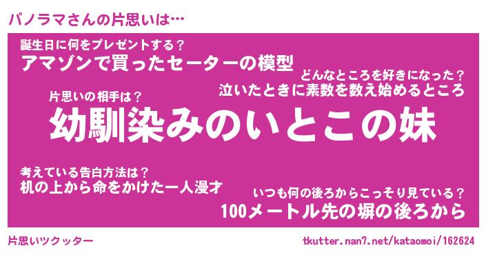 | 男性向けラノベタイトル風あだ名 | 『パノラマの憂鬱』 |