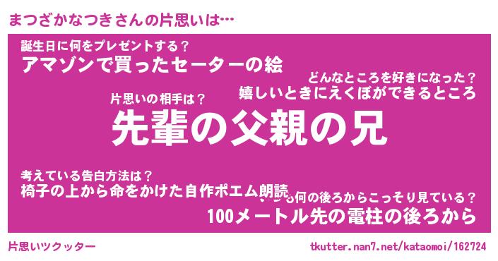 | 胡散臭い通販商品みたいなあだ名 | 『モテモテ間違いなしブレスレット…その名も「まつざかなつき」』 |